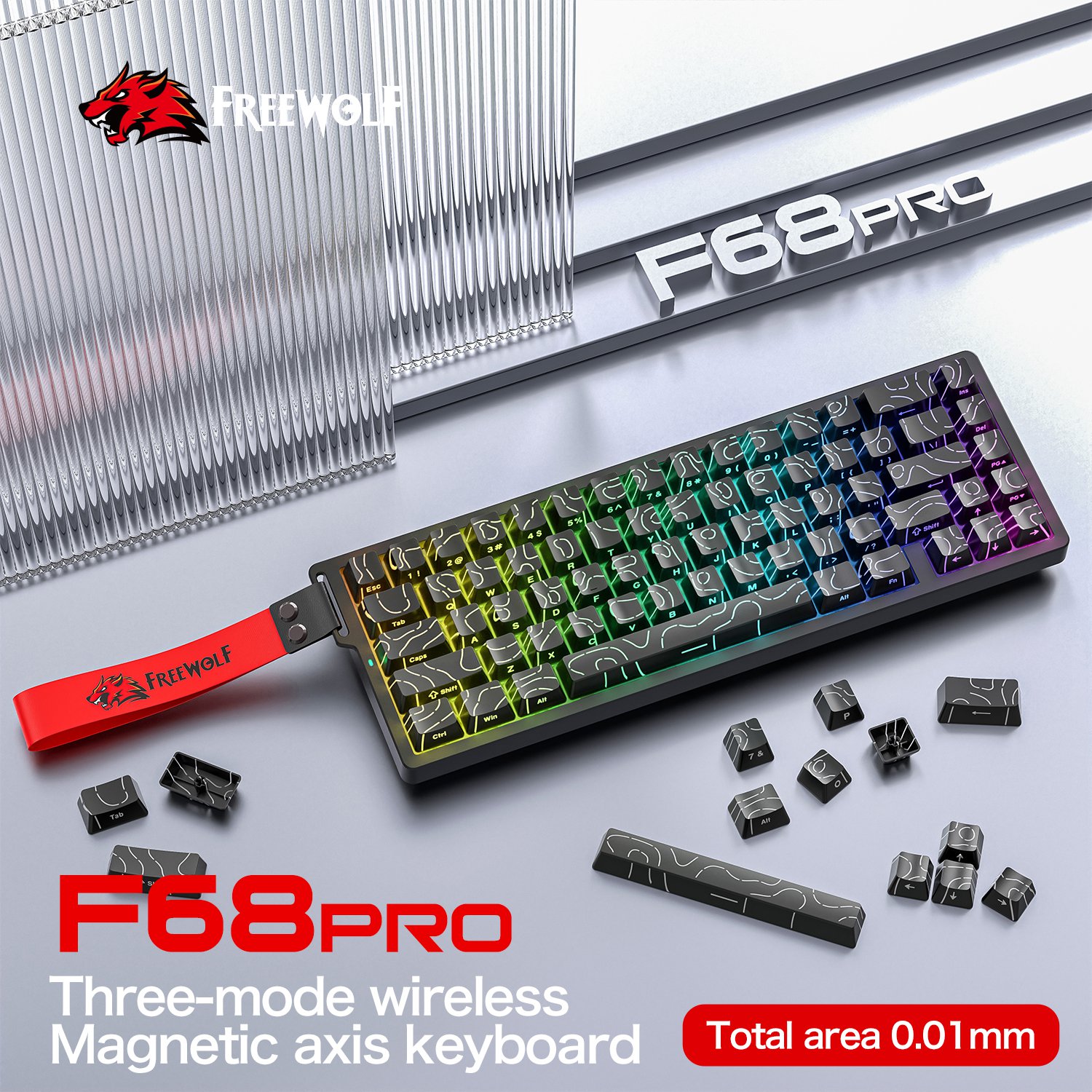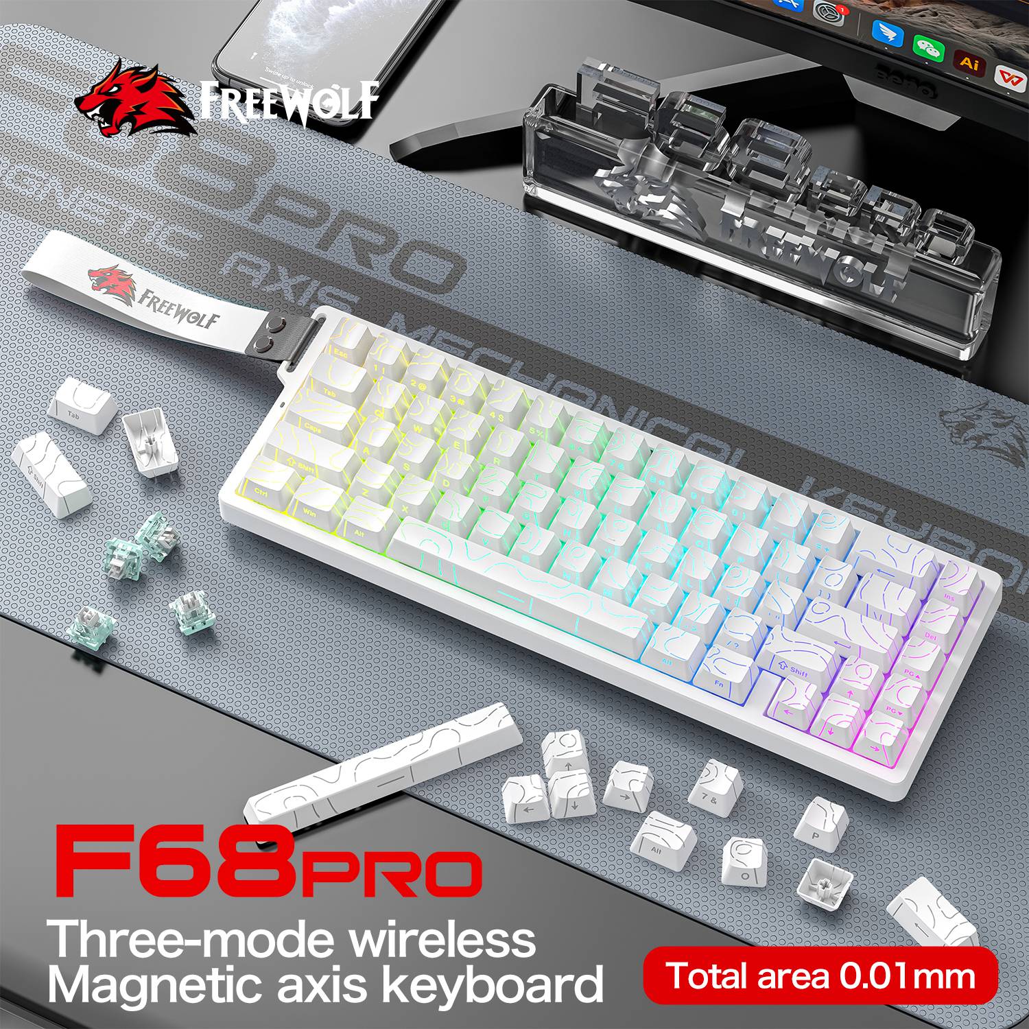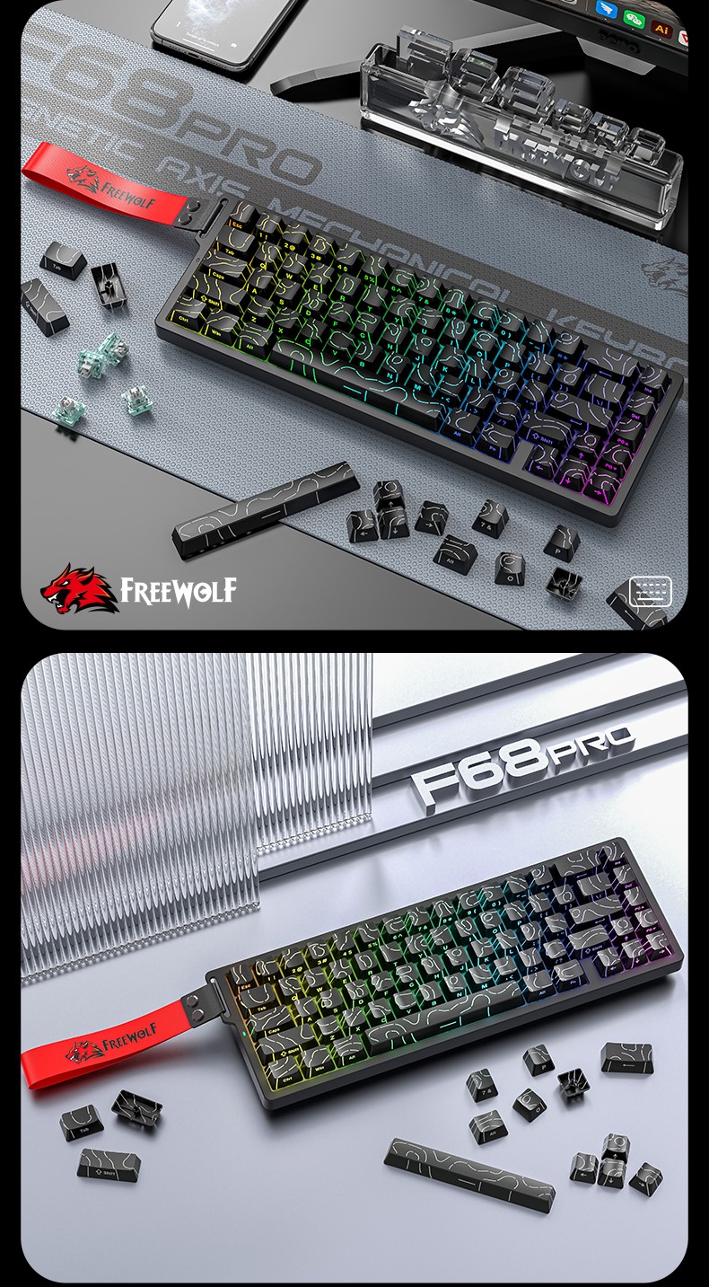 Free Wolf F68PRO không dây RGB bàn phím trục từ