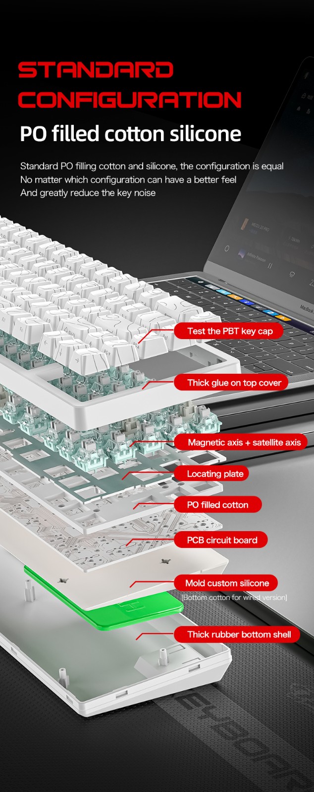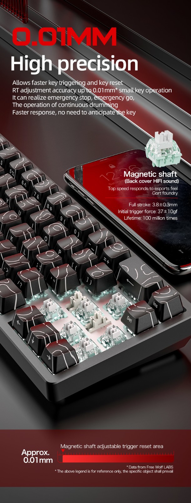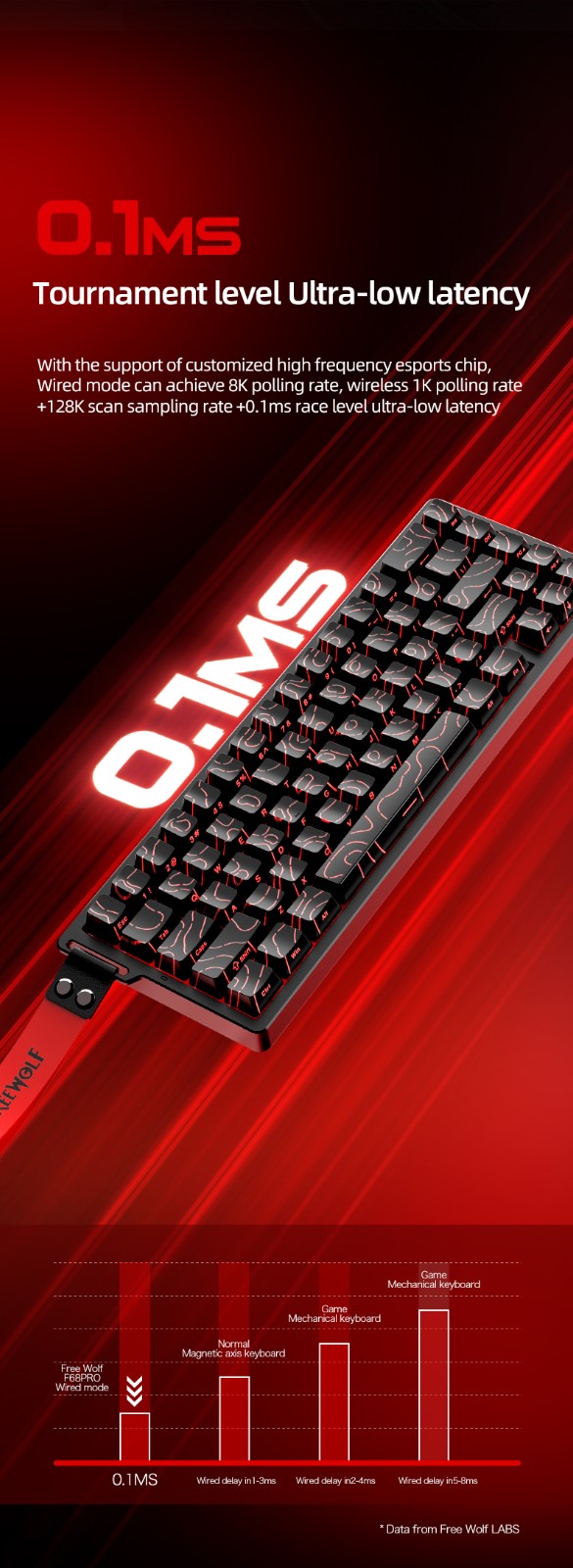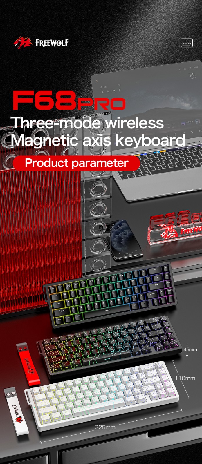 Free Wolf F68PRO không dây RGB bàn phím trục từ